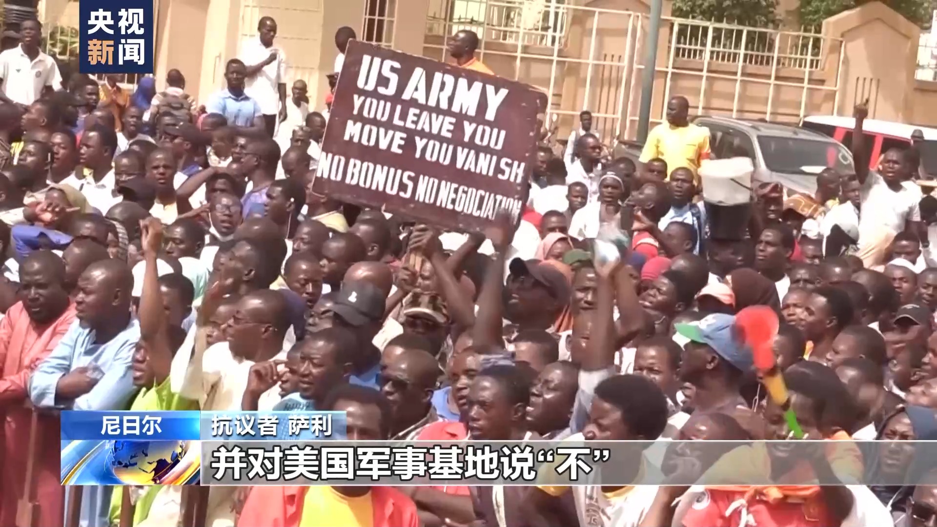 抗議者 薩利:我們來到這里,就是為了支持尼日爾軍政權(quán),并對美國軍事基地說“不”。我們不希望美國人進(jìn)入我們的領(lǐng)土。