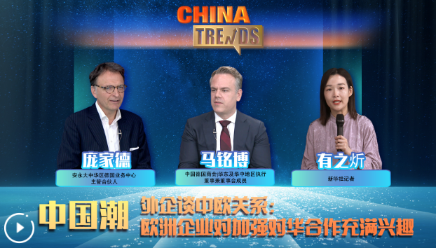 本期《中國潮》訪談邀請中國德國商會|華東及華中地區(qū)執(zhí)行董事兼董事會成員馬銘博、安永大中華區(qū)德國業(yè)務(wù)中心主管合伙人龐家德,圍繞中國經(jīng)濟發(fā)展趨勢、中歐關(guān)系、外企在華投資等主題進行討論。他們對中國經(jīng)濟發(fā)展有信心、有耐心,表示歐洲企業(yè)對加強對華合作充滿興趣。
