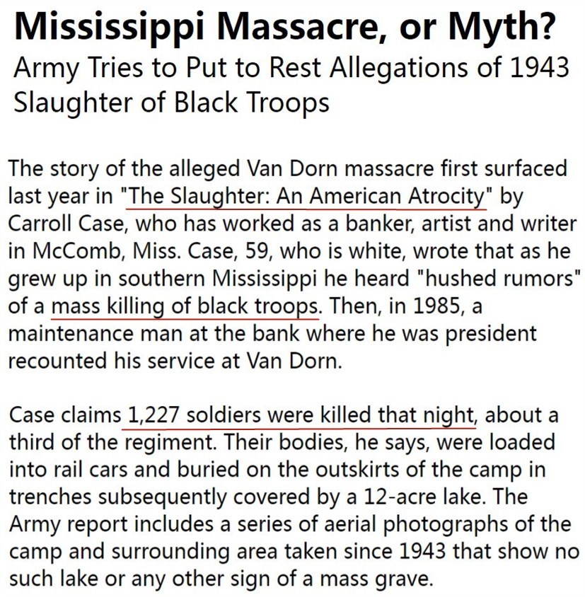 2000年美國曾出版《屠殺:美國的殘暴》一書,首次披露了二戰(zhàn)期間美國白人軍官下令在密西西比州一個(gè)陸軍營地血腥屠殺1200多名非裔士兵的歷史黑幕,引起軒然大波。