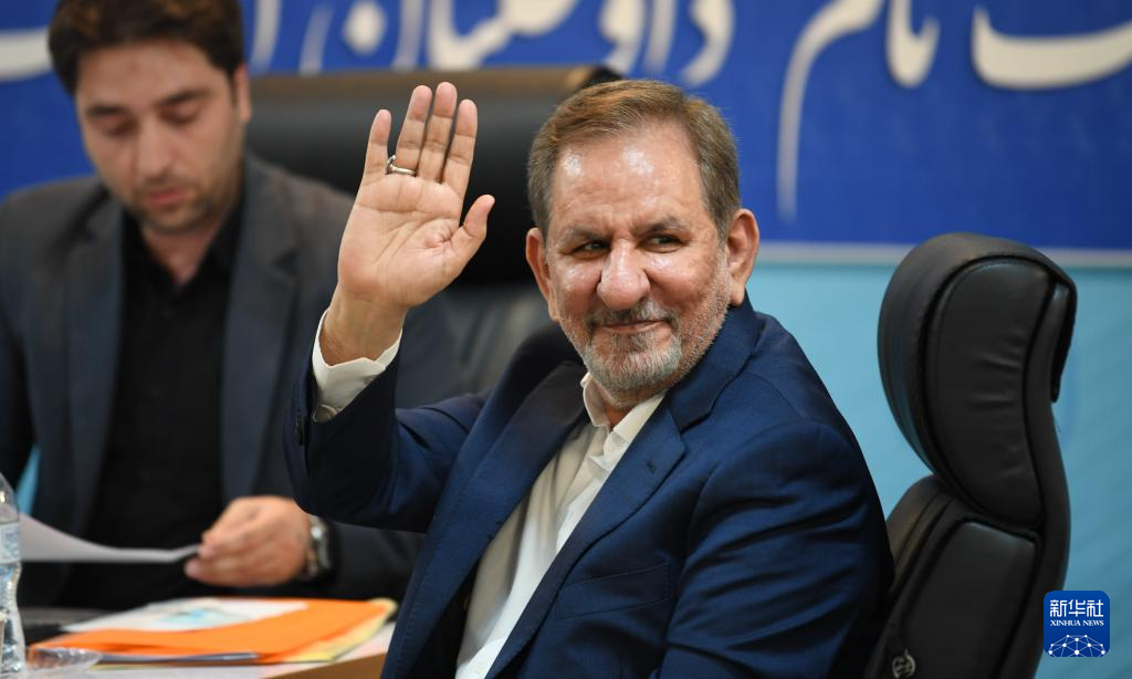 6月3日,伊朗前第一副總統(tǒng)埃沙格·賈漢吉里在德黑蘭參加伊朗總統(tǒng)選舉候選人登記。?新華社記者 沙達提 攝