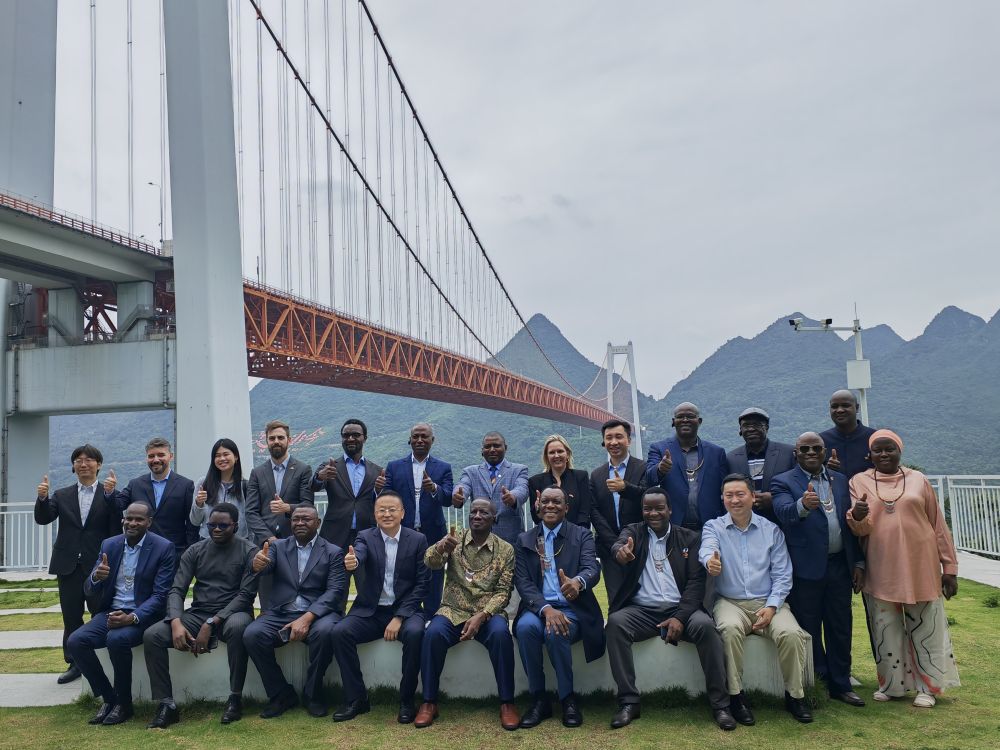 使節(jié)團(tuán)與壩陵河大橋合影。新華社記者 吳思 攝