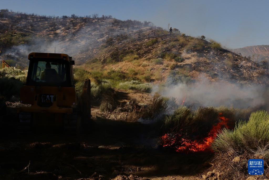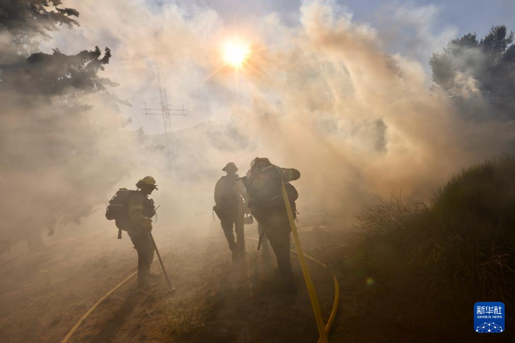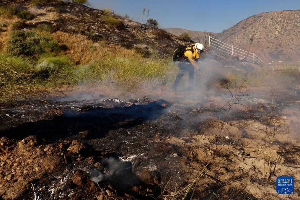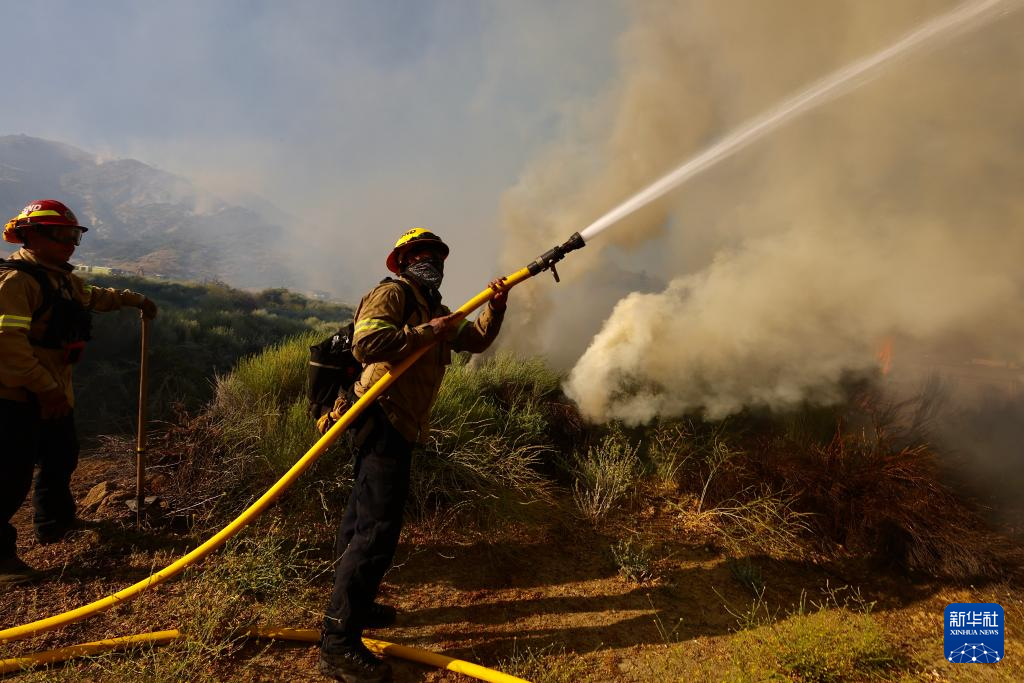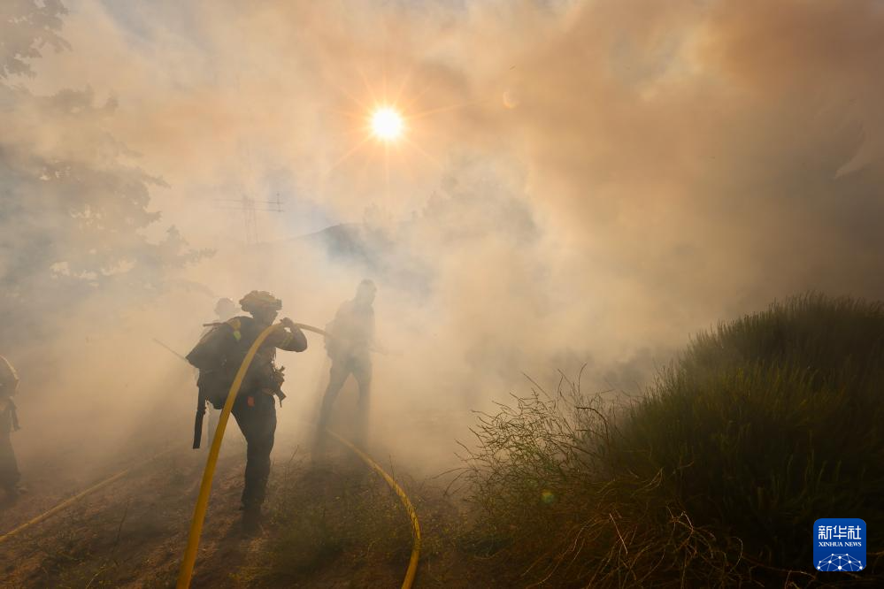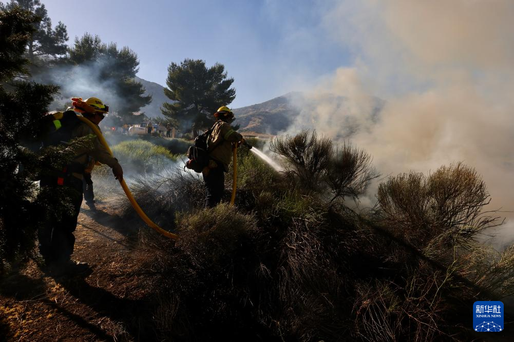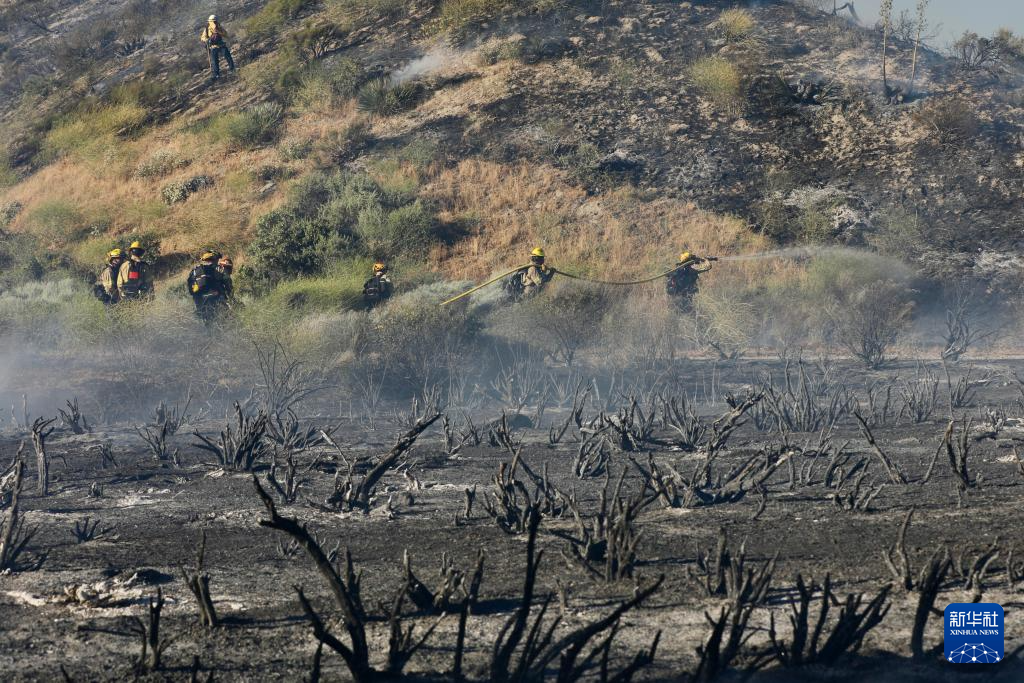 6月16日,消防隊(duì)員在美國(guó)加利福尼亞州洛杉磯縣西北部的戈曼地區(qū)進(jìn)行滅火作業(yè)。