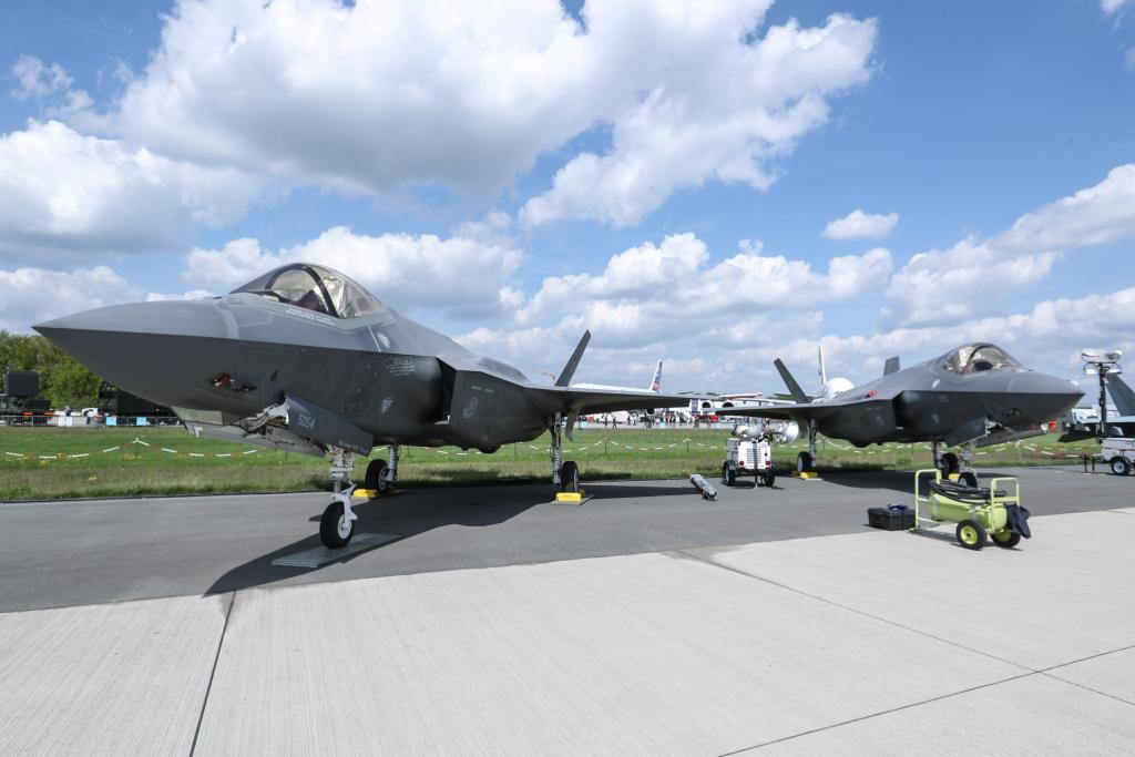 這是2018年4月27日在德國柏林國際航空航天展上拍攝的F-35戰(zhàn)斗機的資料照片。新華社記者單宇琦攝