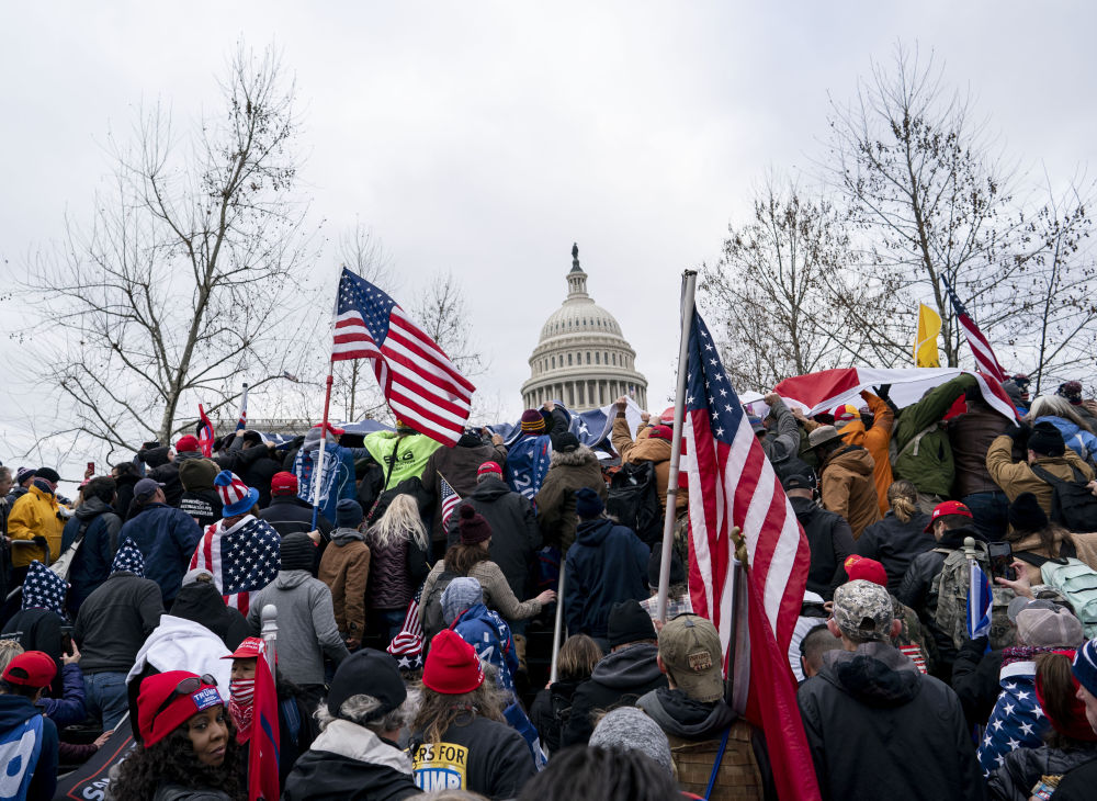2021年1月6日,在美國首都華盛頓,時任總統(tǒng)特朗普的支持者在國會外舉行示威游行,部分示威者沖進國會大廈,與警方發(fā)生沖突,造成一人死亡,當時正在舉行的認證大選結果的國會參眾兩院聯(lián)席會議也被迫中斷。新華社記者劉杰攝