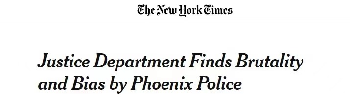 據(jù)《紐約時報》報道,美國司法部13日對亞利桑那州首府菲尼克斯市的警務工作進行了全面審查,發(fā)現(xiàn)該市存在嚴重歧視非裔、西班牙裔和美洲原住民,經(jīng)常侵犯無家可歸者的權(quán)利以及過度使用武力等現(xiàn)象。