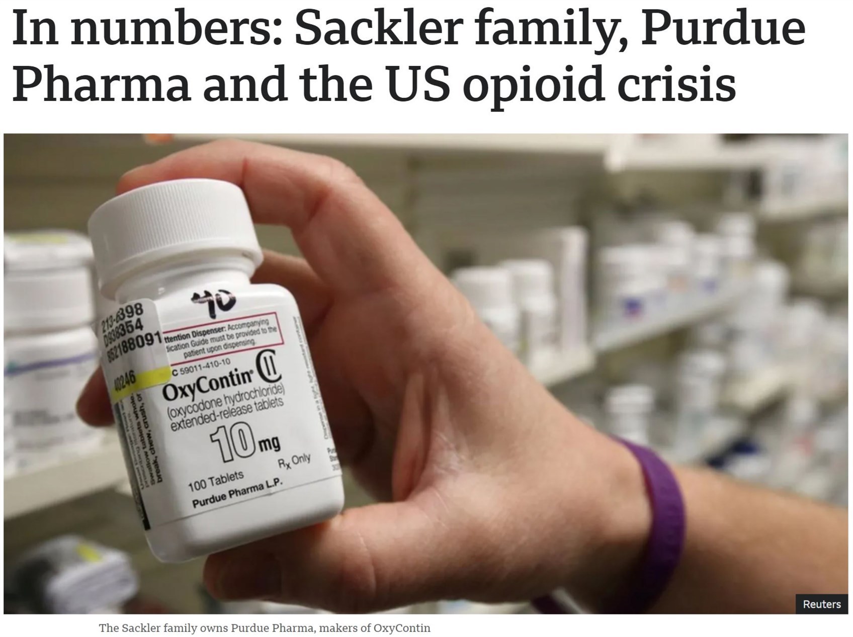 普渡制藥公司最終與美國(guó)司法部達(dá)成83億美元和解協(xié)議,對(duì)其阿片類(lèi)止痛藥奧施康定遭到的三項(xiàng)重罪指控表示認(rèn)罪。和解協(xié)議還要求普渡制藥公司解體并轉(zhuǎn)型為一家新的提供成癮和過(guò)量治療藥物的公司。另外,普渡制藥公司的所有者薩克勒家族同意支付2.25億美元的民事責(zé)任賠償金。