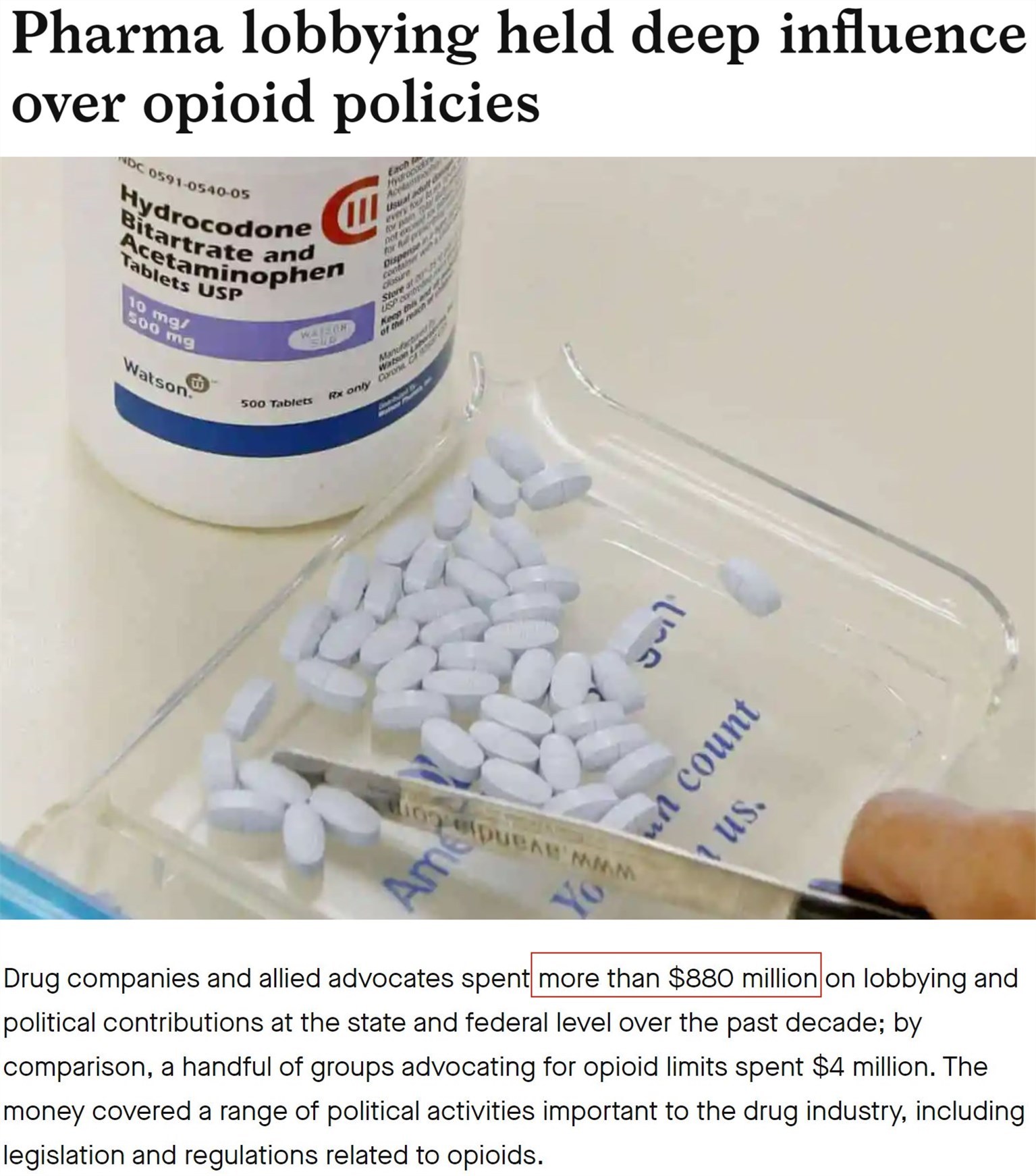 △美國(guó)公共誠(chéng)信中心網(wǎng)站報(bào)道:阿片類(lèi)藥物制造商和經(jīng)銷(xiāo)商10年內(nèi)花費(fèi)8.8億美元用于游說(shuō)和政治捐款,以阻止政府出臺(tái)相關(guān)限制措施。美國(guó)阿片類(lèi)藥物危機(jī)專(zhuān)家克洛尼稱(chēng),這一花費(fèi)比美國(guó)槍支游說(shuō)集團(tuán)的游說(shuō)資金還要高8倍。