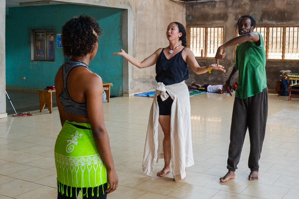 為了讓沒有任何專業(yè)基礎的喀麥隆學生們理解現(xiàn)代舞,娜爾斯和蔣可鈺還想到用中國太極和源于印度的瑜伽,向學員們講解太極圓弧運動和道家哲學思想,讓學生們領會中國太極和東方文化的思想內(nèi)涵,催化了中非古老文化的融合。