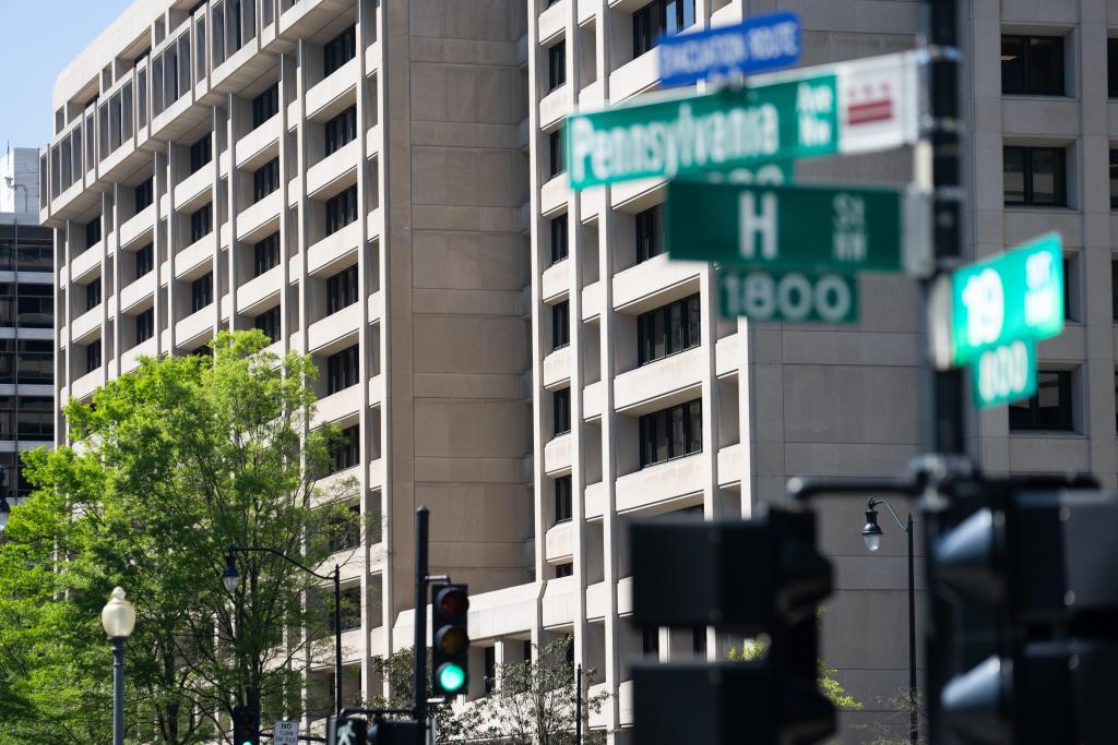 這是4月16日在美國(guó)華盛頓拍攝的國(guó)際貨幣基金組織總部。新華社記者劉杰攝