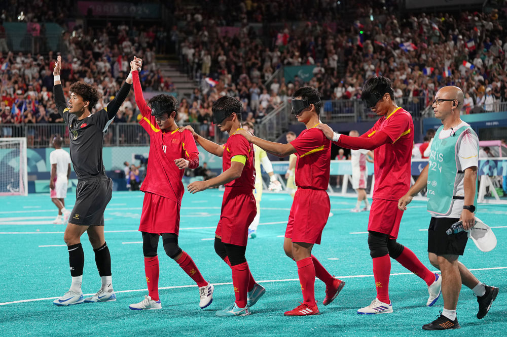 沒有華麗的踩單車過人,沒有炫酷的驚天倒鉤……除兩隊(duì)門將外,八名球員戴著黑色眼罩,在一次次奔跑、沖撞、摔倒、起身的動(dòng)作中循環(huán)往復(fù);比賽中,為不影響運(yùn)動(dòng)員發(fā)揮,現(xiàn)場(chǎng)觀眾只有在進(jìn)球之后才能歡呼喝彩。