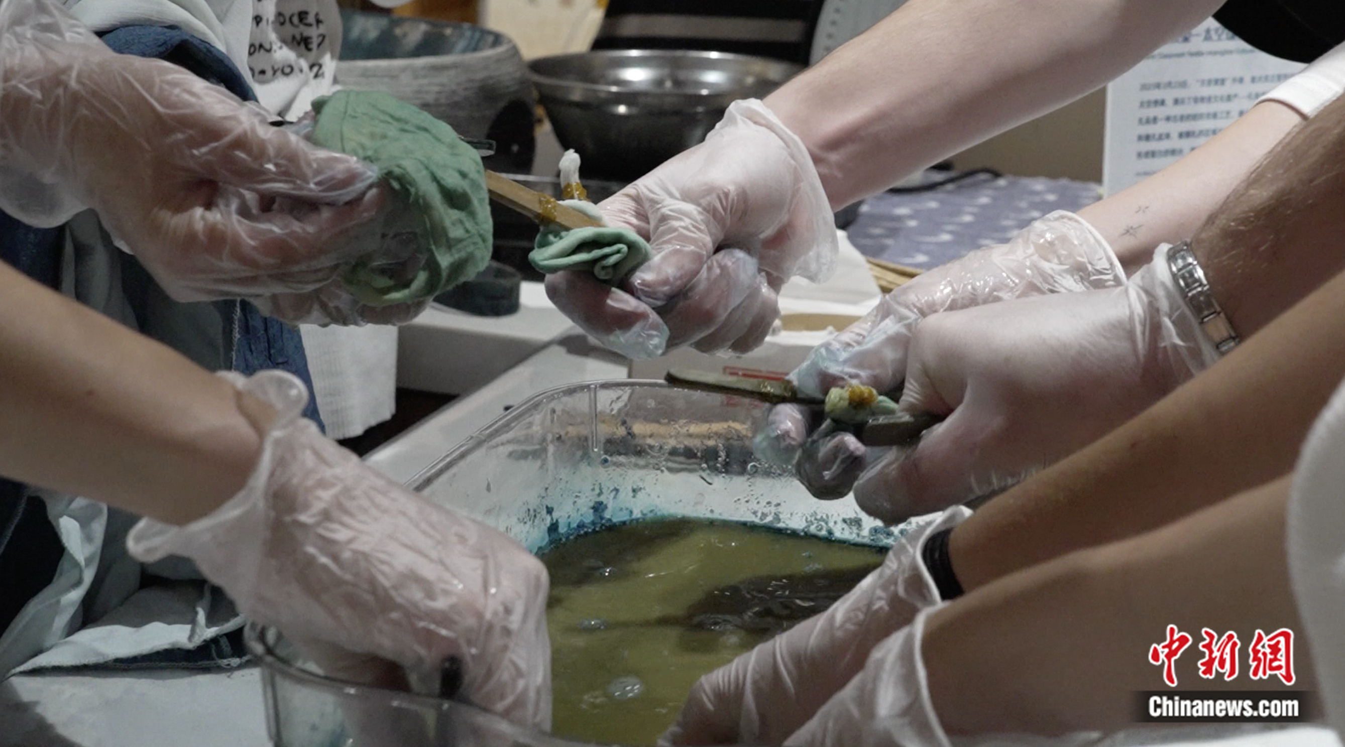 “洋弟子”體驗高陽草木染。 張子怡 攝