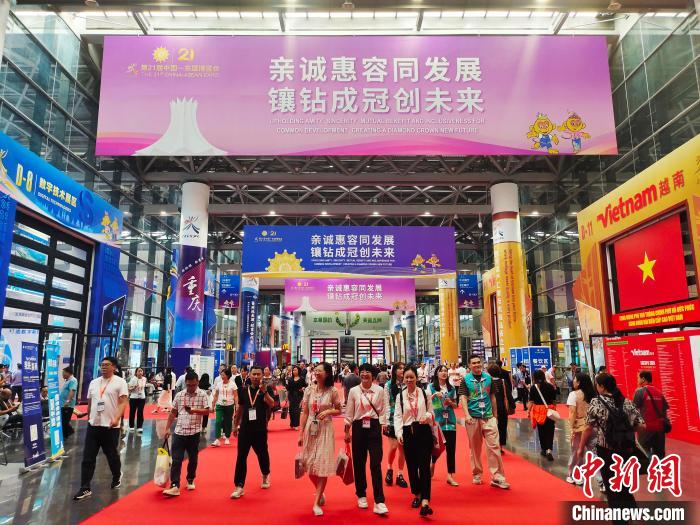 9月26日,在廣西南寧國際會展中心,民眾在參觀第21屆中國—東盟博覽會展區(qū)。中新社記者 黃艷梅 攝