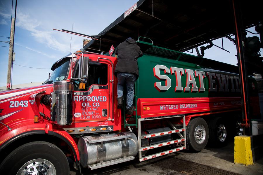 2022年3月8日,一輛運(yùn)油車駛過(guò)美國(guó)紐約街頭。新華社發(fā)(邁克爾·內(nèi)格爾攝)