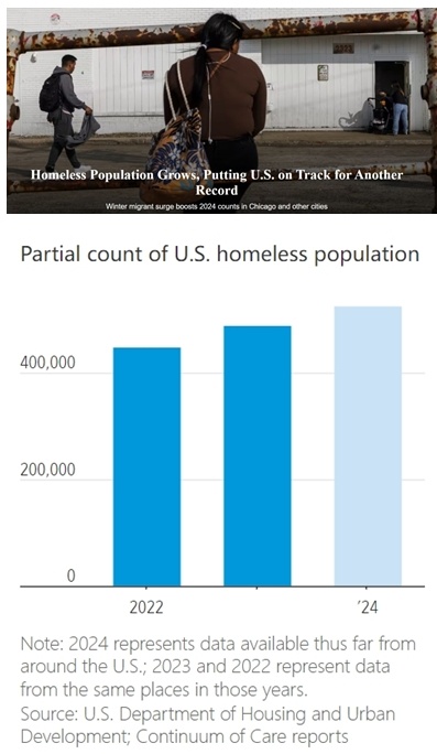 日前,美國《華爾街日報》對全美超過250個覆蓋城市和農(nóng)村地區(qū)的無家可歸者服務(wù)組織的數(shù)據(jù)進(jìn)行分析后發(fā)現(xiàn),上述地區(qū)無家可歸者的數(shù)量較去年同期增加了約10%。這一趨勢表明,美國今年無家可歸者人數(shù)可能會超過2023年估計(jì)的65.3萬人,這是自2007年有記錄以來的最高數(shù)字。