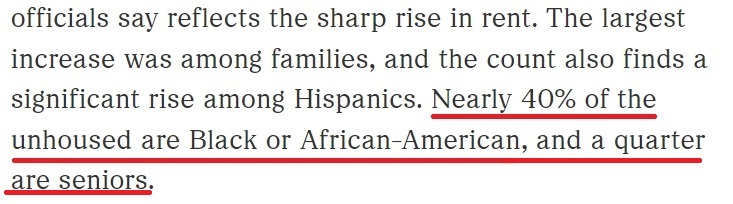 根據(jù)美國全國公共廣播電臺2023年報道中提及的數(shù)據(jù),近40%的無家可歸者是非洲裔美國人,25%的無家可歸者是老年人,而拉丁裔無家可歸者的增幅則在近年大幅提升。