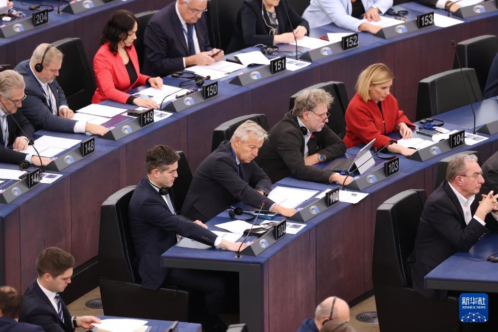 11月27日,在法國斯特拉斯堡歐洲議會會議現(xiàn)場,歐洲議會議員投票表決。新華社記者 趙丁喆 攝