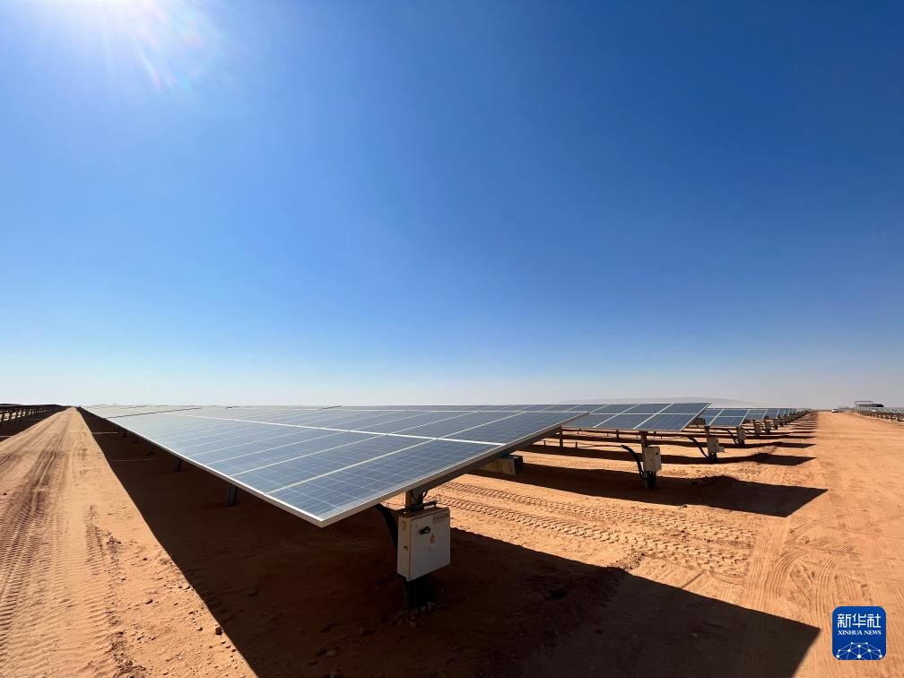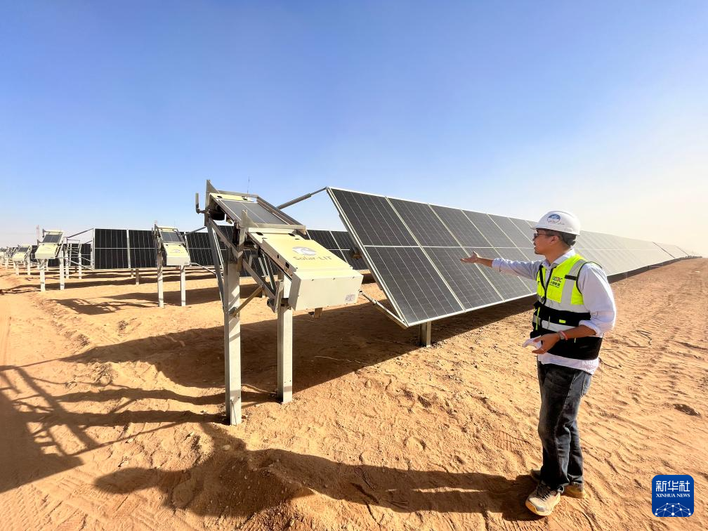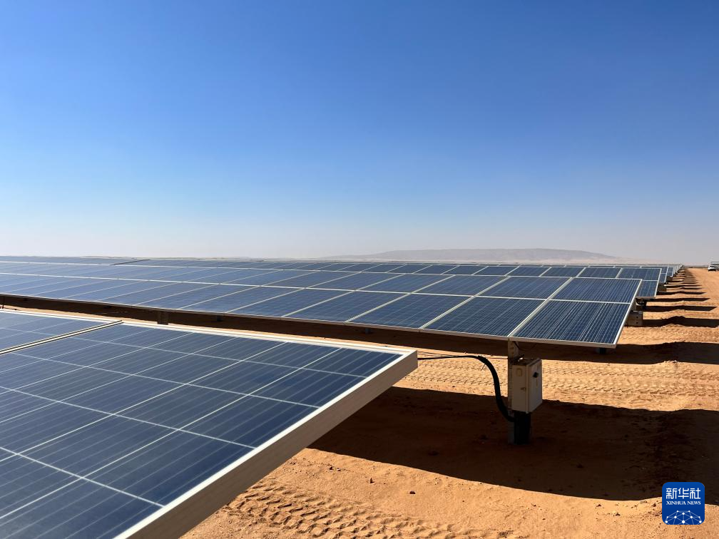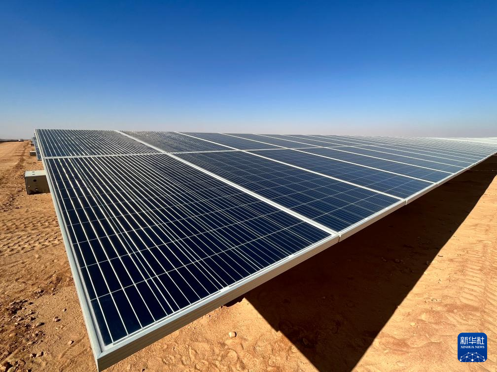 充沛的光照讓埃及具備得天獨厚的光伏發(fā)電條件。本班光伏產(chǎn)業(yè)園占地面積37平方公里,規(guī)劃建設(shè)40座太陽能發(fā)電廠,總裝機(jī)容量約2千兆瓦,目前已有32座發(fā)電廠建成并投入運(yùn)營。廣袤的撒哈拉沙漠中,高高架起的光伏板像棋盤格一樣鋪展開,從高處俯瞰猶如藍(lán)色海洋。光伏板跟隨太陽的位置調(diào)整角度,炙熱的陽光被源源不斷轉(zhuǎn)化為電力能源。