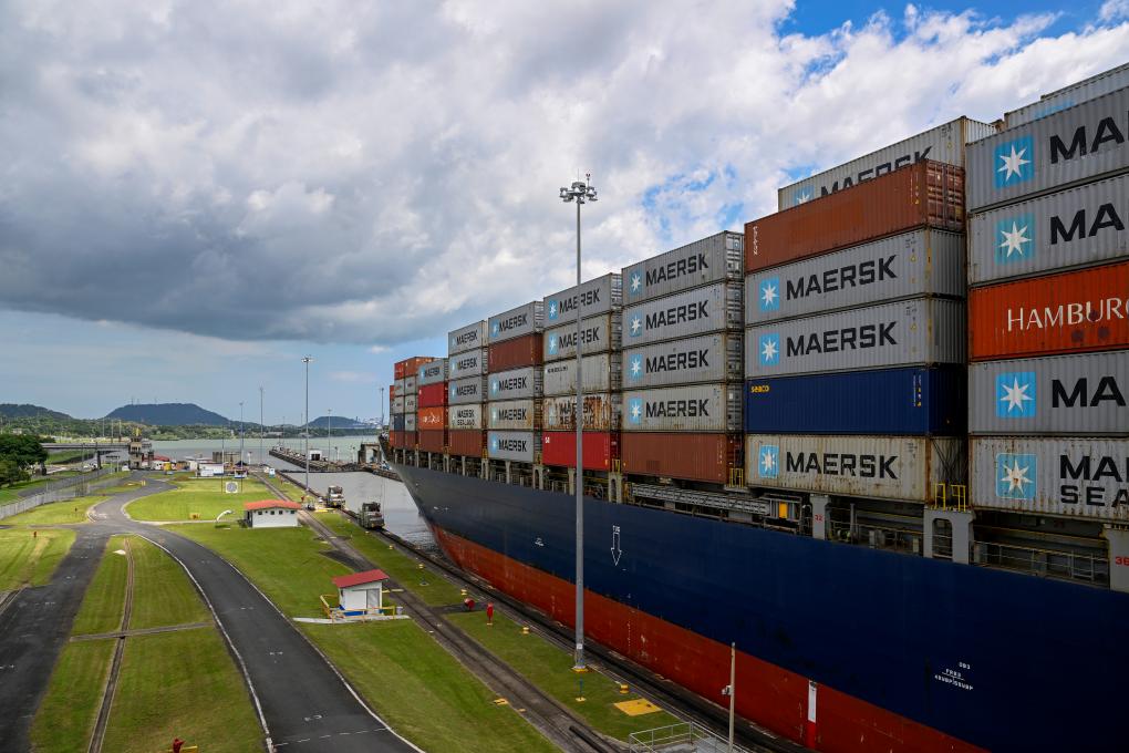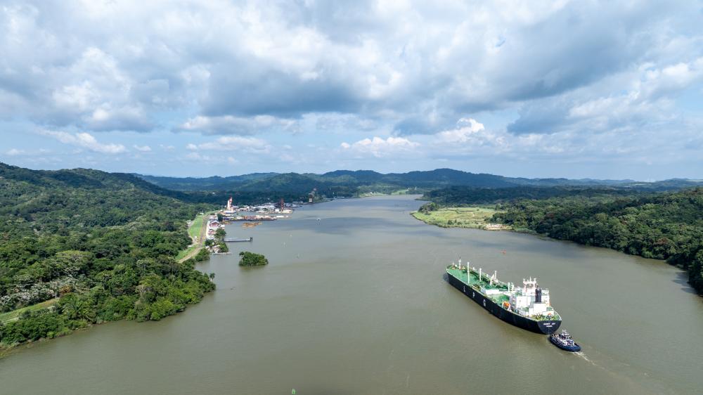 8月28日,在巴拿馬首都巴拿馬城附近,一艘貨輪通過巴拿馬運河的米拉弗洛雷斯船閘準(zhǔn)備駛?cè)胩窖?。新華社記者李木子攝