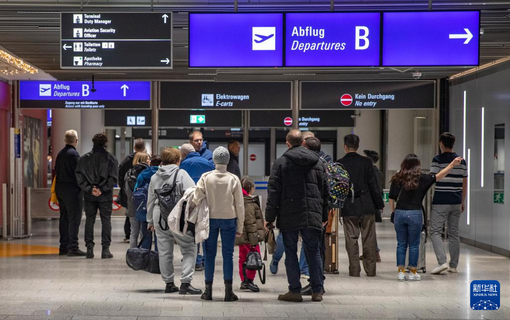 1月3日,人們聚集在德國法蘭克福機(jī)場出發(fā)大廳。新華社記者 張帆 攝
