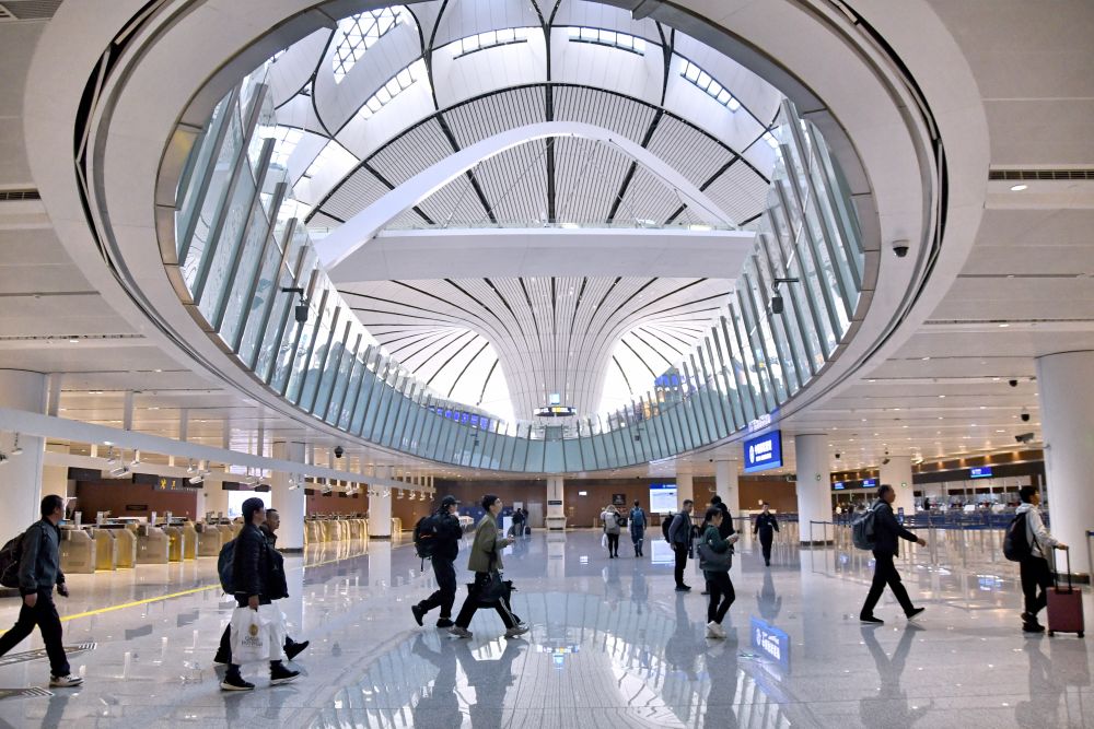 2024年12月27日,外國游客在北京大興機(jī)場邊檢大廳準(zhǔn)備入境。新華社記者 鞠煥宗 攝