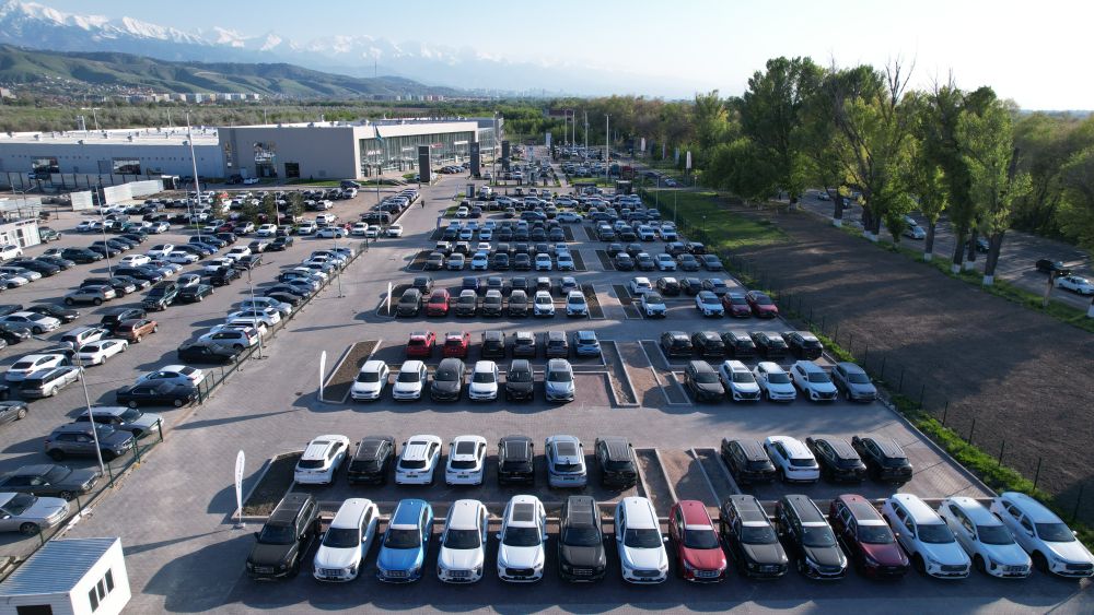 2023年5月5日,汽車停放在哈薩克斯坦阿拉木圖一家大型二手車交易市場(chǎng)(無人機(jī)照片)。新華社發(fā)(奧斯帕諾夫攝)