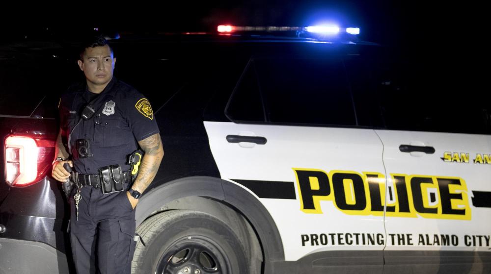 2022年6月27日,警察在美國(guó)得克薩斯州圣安東尼奧移民死亡事件現(xiàn)場(chǎng)警戒。新華社發(fā)(尼克·瓦格納攝)