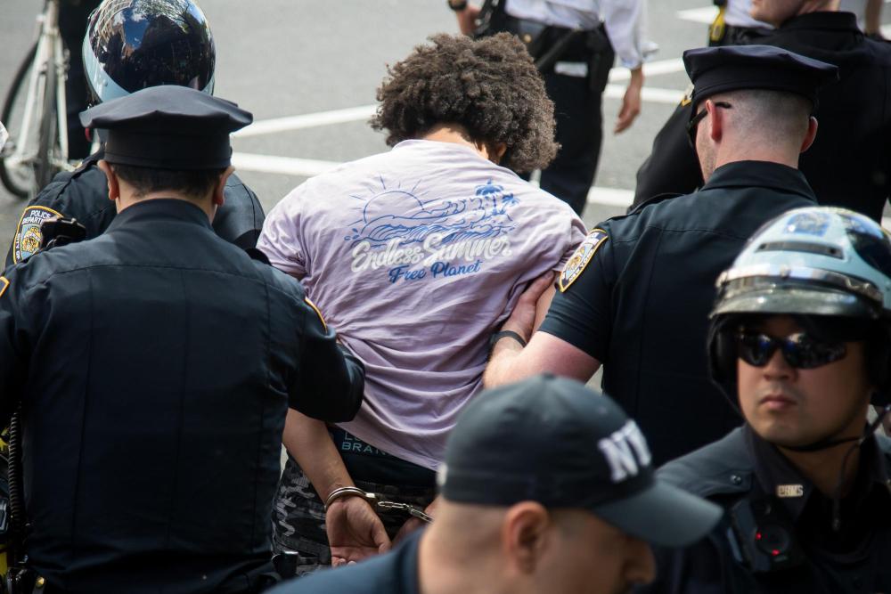 2023年5月6日,在美國(guó)紐約,警察帶走抗議者。新華社發(fā)(郭克攝)