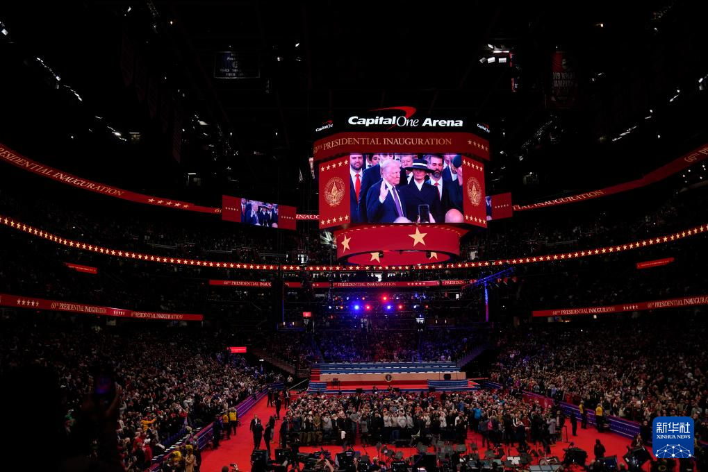 1月20日,在美國(guó)首都華盛頓第一資本體育館,人們觀看美國(guó)第47任總統(tǒng)就職典禮的轉(zhuǎn)播。新華社記者 吳曉凌 攝