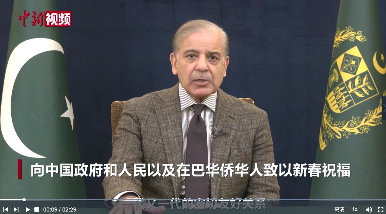 當(dāng)?shù)貢r間1月28日,巴基斯坦總理夏巴茲發(fā)表視頻致辭,向中國政府和人民以及在巴華僑華人致以新春祝福,表示巴方將繼續(xù)與中方攜手為全球和平、繁榮與和諧作出貢獻(xiàn)。(記者 薄雯雯制作 徐妙巧 視頻來源 巴基斯坦駐華大使館)