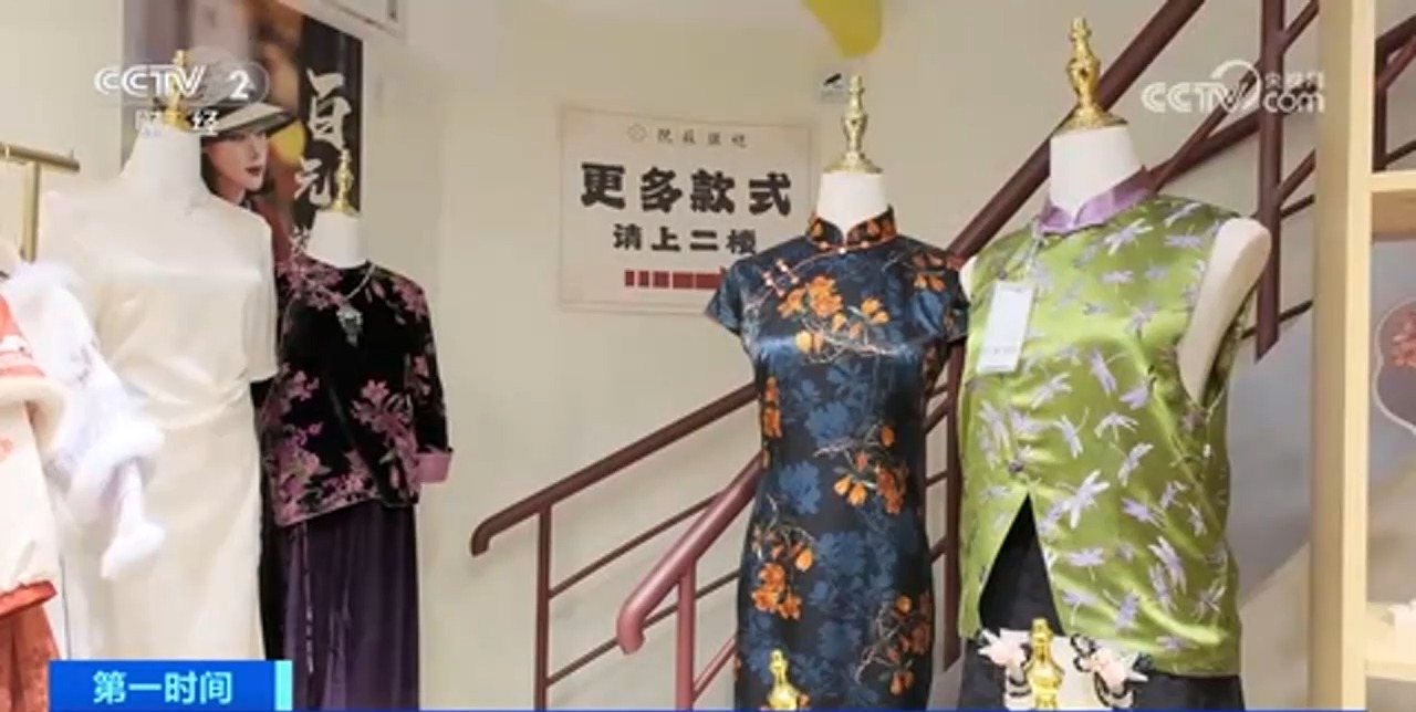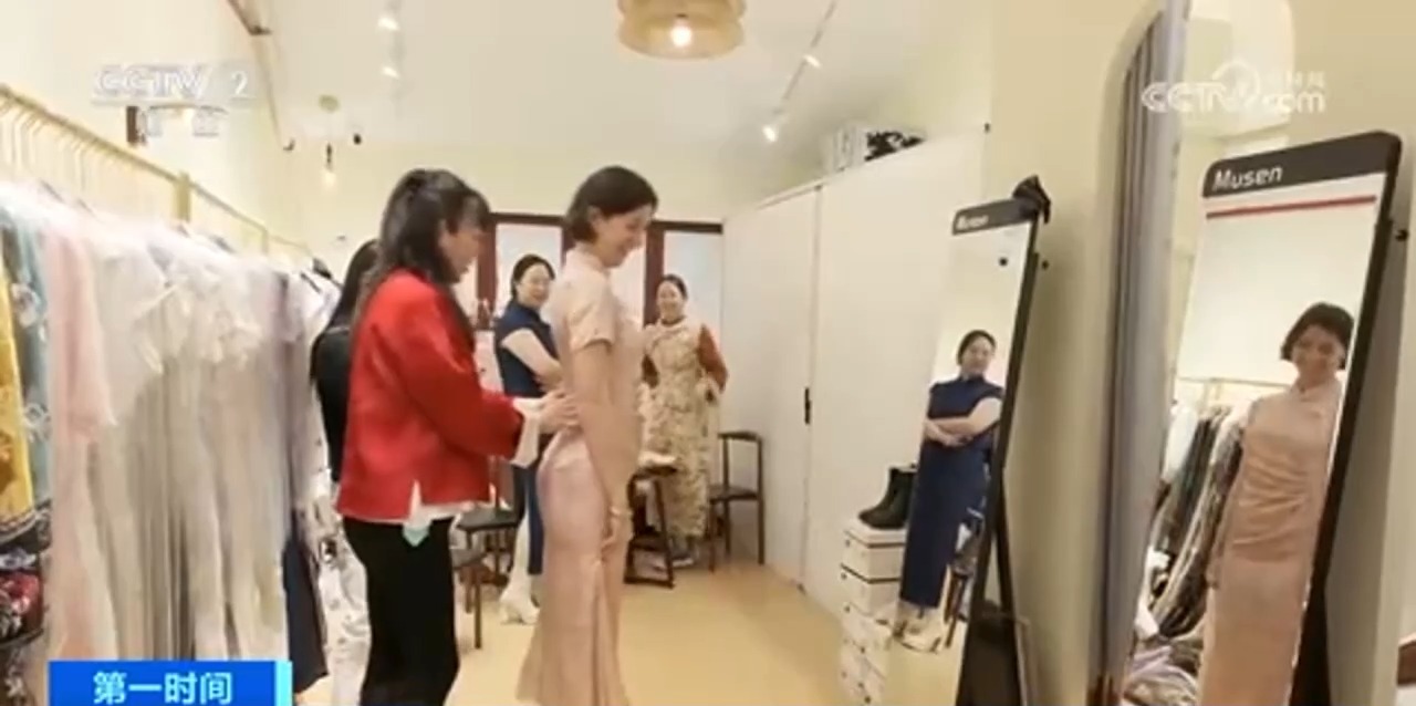 旗袍店店長表示,最近幾個月由于外國游客增多,許多外國客人來體驗(yàn)穿中國旗袍,也帶動了門店銷量增長。