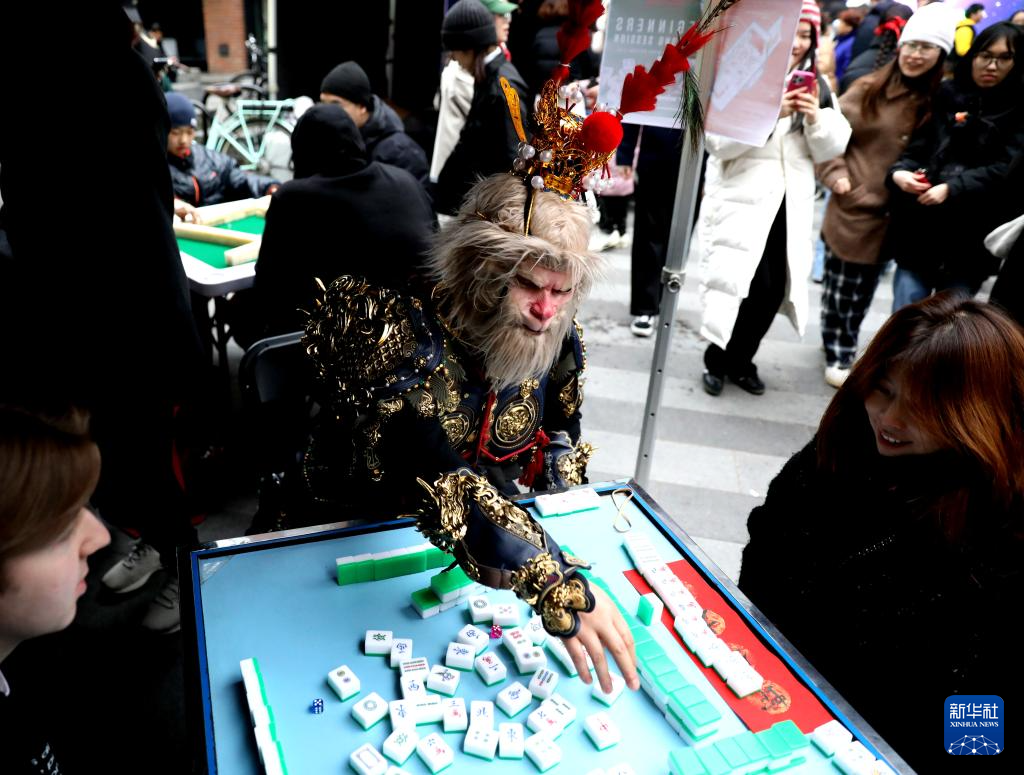 今年,倫敦卡姆登集市首次舉辦了中國(guó)春節(jié)慶典活動(dòng)。喜慶的春節(jié)燈飾高高懸掛,在微風(fēng)中輕輕搖曳;空氣中彌漫著中式點(diǎn)心的香氣,令人垂涎欲滴。人群中,偶爾可見漢服衣袂翩然掠過,許多人手中還拿著紅色的燈籠和“?!弊?。在慶典活動(dòng)上,當(dāng)?shù)厥忻裾淠荨っ谞栁值乱贿吅爸芭觥?,一邊開心地將麻將桌上的“南風(fēng)”牌收到面前。她不僅自己打得得心應(yīng)手,還不時(shí)給身邊的新手講解規(guī)則。