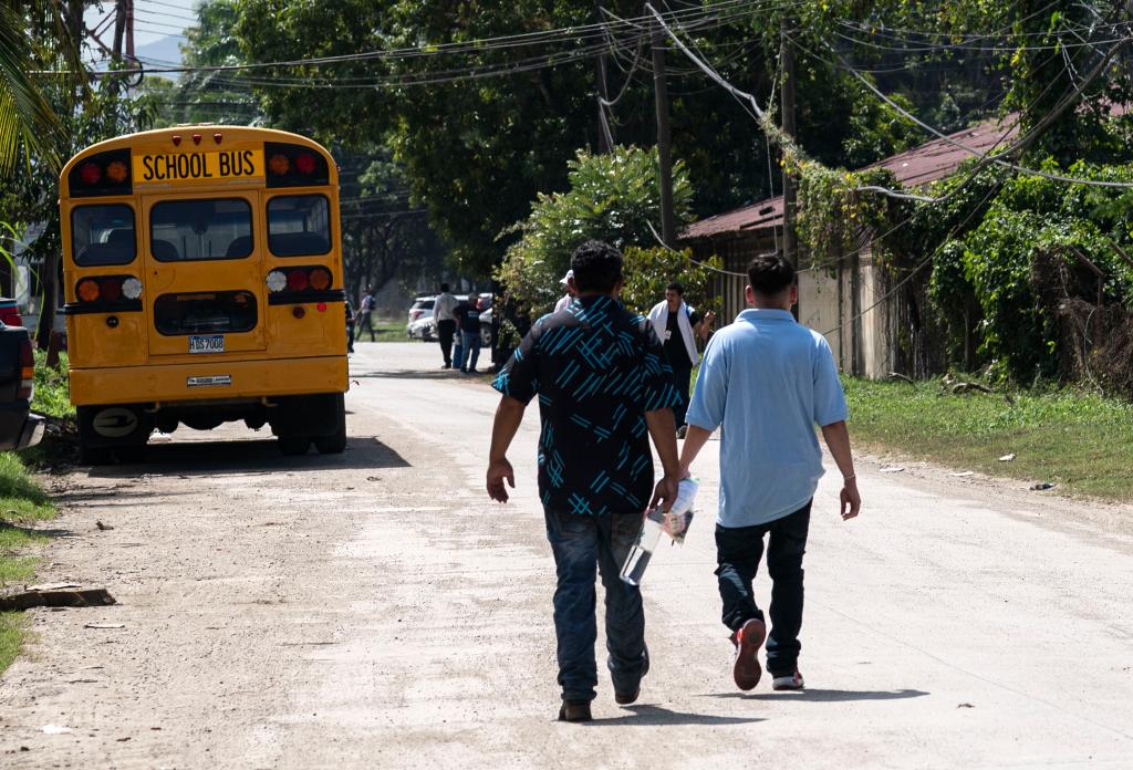 機(jī)場(chǎng)停機(jī)坪邊,設(shè)有一處“返鄉(xiāng)移民援助中心”。援助中心門口,一名洪都拉斯工作人員手里抓著一大把黑色鞋帶,發(fā)給被美國(guó)遣返回來(lái)的人——被遣返移民在美國(guó)遭拘留時(shí),鞋帶全都被沒(méi)收了。