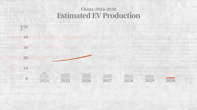 國際能源署也指出,到2030年,電動(dòng)汽車需要有4500萬輛,才能實(shí)現(xiàn)氣候目標(biāo)。中國2024年的電動(dòng)汽車產(chǎn)量是1000萬輛,只占該目標(biāo)的22%,即使保持高增長速度,到2030年也不太可能“產(chǎn)能過?!薄?/p>