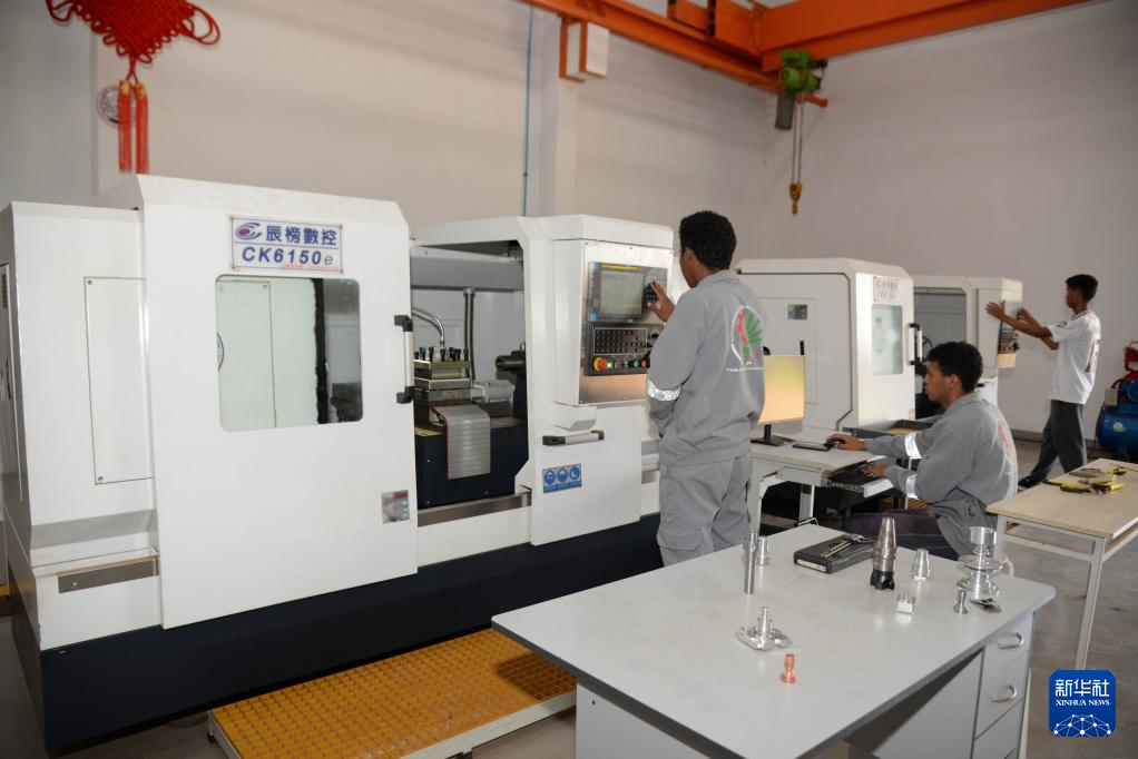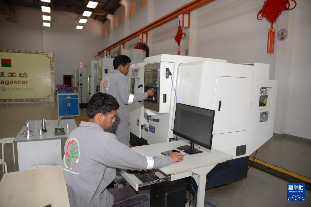 2月10日,在馬達(dá)加斯加首都塔那那利佛的魯班工坊,機(jī)械工程專(zhuān)業(yè)學(xué)生進(jìn)行數(shù)控機(jī)床的教學(xué)實(shí)踐。新華社發(fā)(西塔卡·拉喬納里松攝)