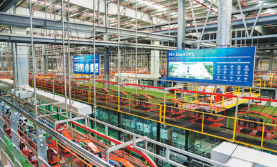泰國春武里府,美的集團家用空調事業(yè)部的5G全聯(lián)接工廠內景。(新華社發(fā))