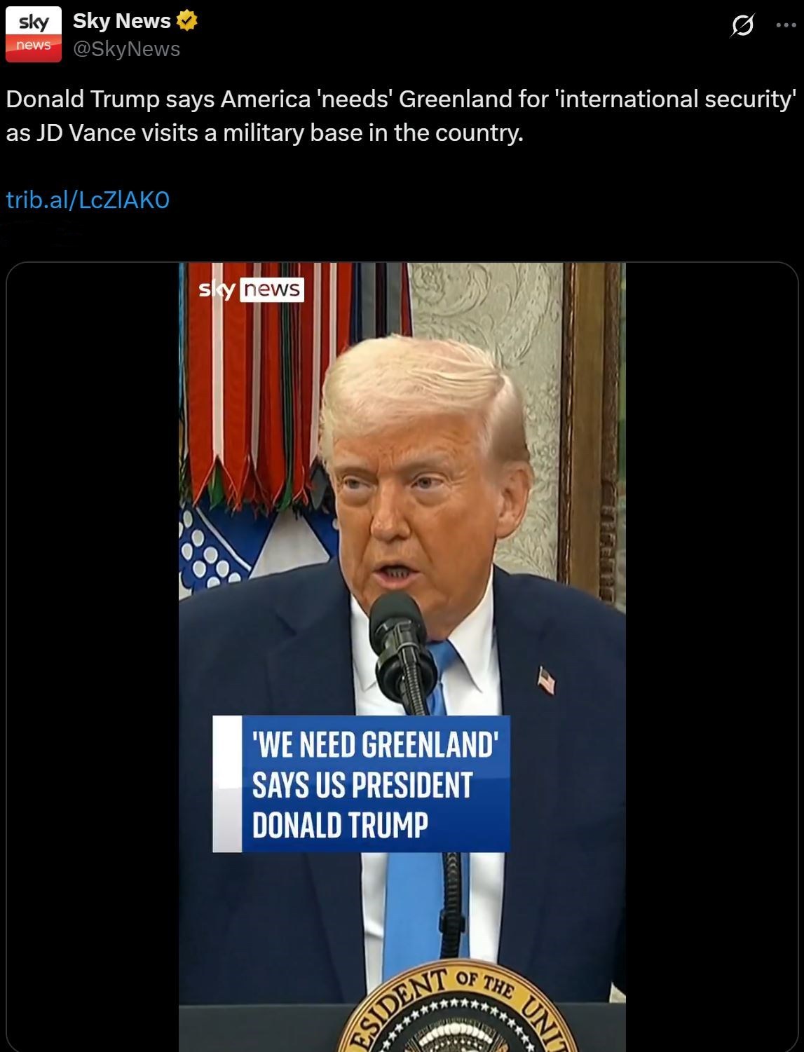 針對(duì)格陵蘭島各界將萬(wàn)斯28日的到訪視為“一種危險(xiǎn)的挑釁”,特朗普辯稱,美方代表團(tuán)的訪問(wèn)“是友好的,不是挑釁”。
