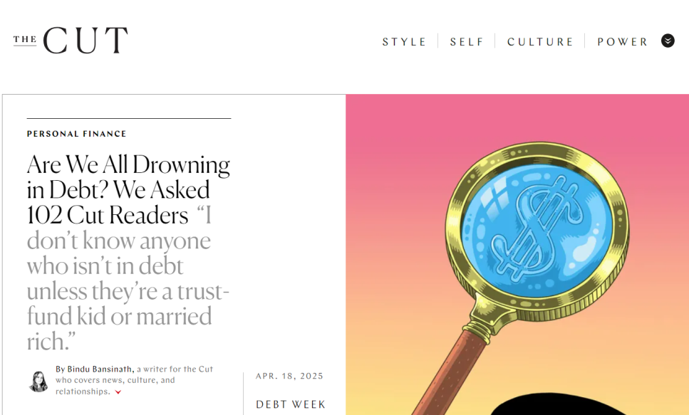 The Cut調(diào)查發(fā)現(xiàn),多數(shù)受訪者因信用卡過度消費而欠債,最常見的債務范圍在2.1萬美元至5萬美元之間。高利率的信用卡債務讓許多人陷入“以債養(yǎng)債”的惡性循環(huán),他們用“利息的倉鼠輪”來形容其背負債務。他們借新債還舊債,利息卻像滾雪球般越積越多,只能永無休止地償還最低還款額。