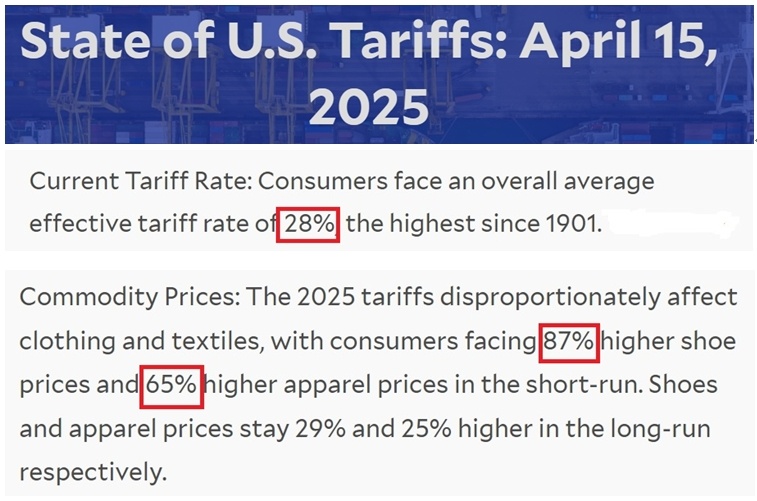 報告還指出,美國消費者當前面臨的平均關稅稅率高達28%,為1901年以來的最高水平。