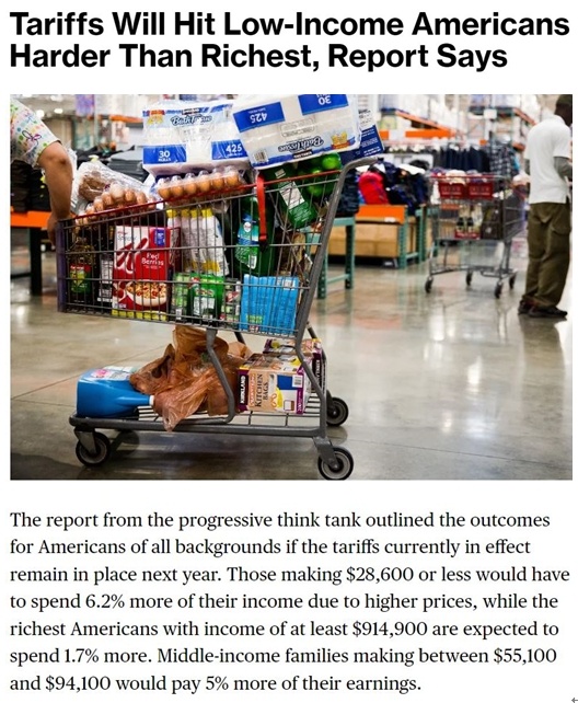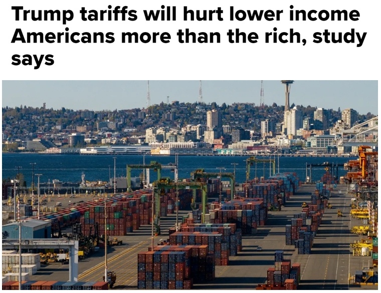 用耶魯預算實驗室主任、白宮經(jīng)濟顧問委員會前首席經(jīng)濟學家厄尼·特德斯奇的話說,“美國低收入人群受到關稅的影響會更大”。