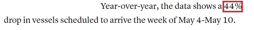 美國消費者新聞與商業(yè)頻道網(wǎng)站:長灘港首席執(zhí)行官科爾德羅預計,5月4日至5月10日期間,到港貨船數(shù)量與去年同期相比將下降44%。