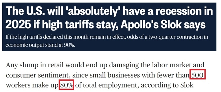 他還警告,如果高關稅持續(xù)下去,美國經(jīng)濟連續(xù)兩個季度萎縮的可能性將高達90%,今年年內(nèi)“絕對”會陷入衰退。