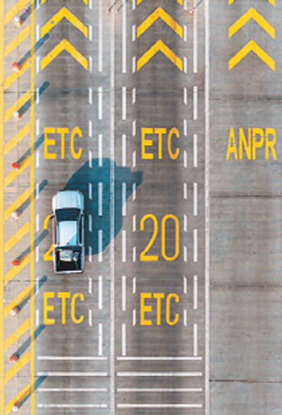 汽車駛過柬埔寨金港高速金邊收費站(無人機(jī)照片)。張金加攝(新華社發(fā))