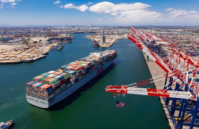 在截至4月25日的一周內(nèi),有十艘集裝箱船抵達了美國洛杉磯港和長灘港,所載貨物達55.5萬噸,這一數(shù)字與去年同期大致相當。