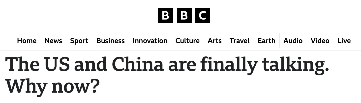 英國廣播公司的報道稱,隨著世界兩大經(jīng)濟(jì)體即將在瑞士開始會談,中美貿(mào)易戰(zhàn)可能正在緩和。