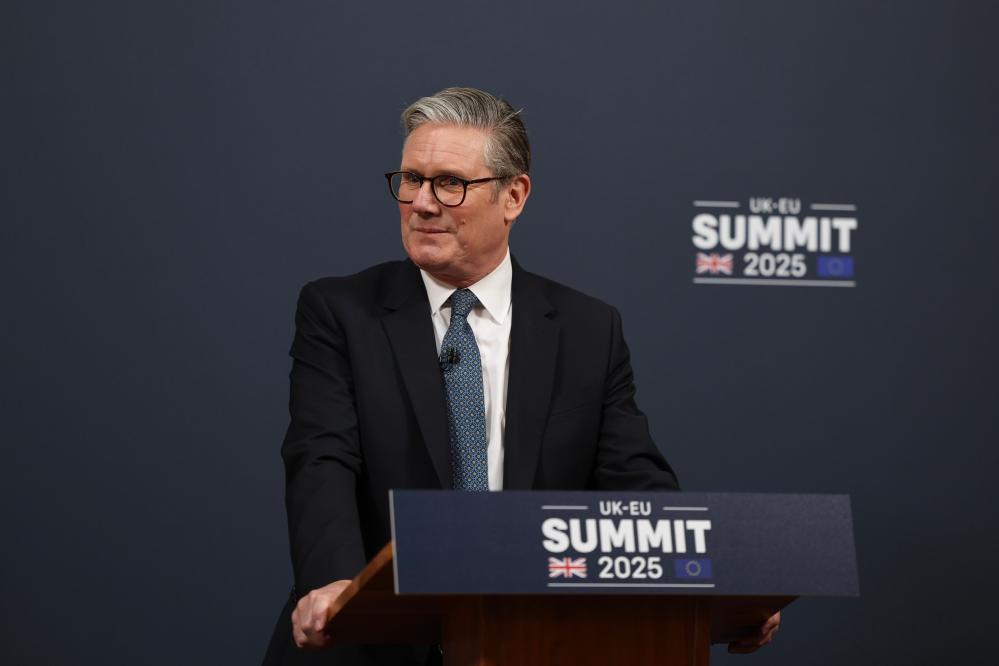 5月19日,英國首相斯塔默在倫敦與歐盟領(lǐng)導(dǎo)人舉行會議后參加記者會。新華社發(fā)(英國首相府供圖)