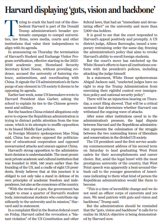 在其他一些機(jī)構(gòu)屈服于美國(guó)政府壓力之后,哈佛大學(xué)與美國(guó)政府之間的斗法表明,美國(guó)社會(huì)日益撕裂,矛盾重重,斗爭(zhēng)激烈。