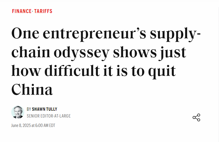美國(guó)《財(cái)富》雜志網(wǎng)站6月8日刊發(fā)文章《一個(gè)企業(yè)家艱難“去中國(guó)化”的啟示》,闡述了中國(guó)供應(yīng)鏈與產(chǎn)業(yè)鏈的優(yōu)勢(shì),也揭示了美國(guó)制造業(yè)回流面臨的巨大挑戰(zhàn)。
