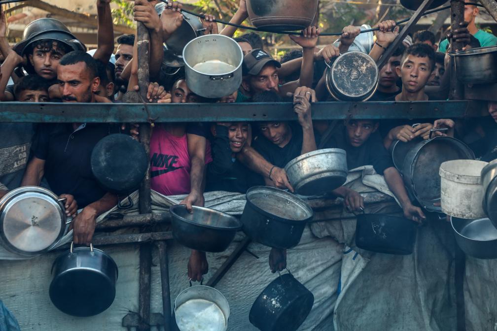 7月20日,在加沙城,當(dāng)?shù)孛癖姷却I(lǐng)取食物。新華社發(fā)(里澤克·阿卜杜勒賈瓦德攝)