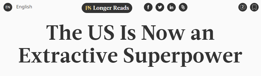 近日,世界報(bào)業(yè)辛迪加網(wǎng)站刊登一篇文章,標(biāo)題是《美國已經(jīng)成為一個(gè)榨取型的超級(jí)大國》。