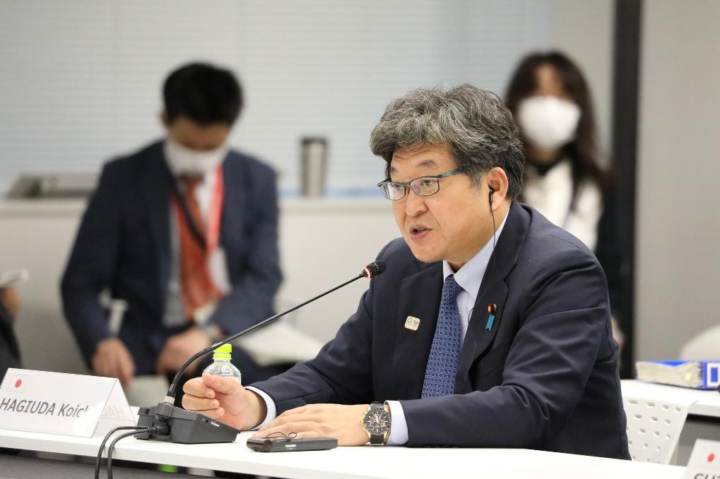 2020年9月24日,時任日本文部科學(xué)大臣萩生田光一在會議現(xiàn)場講話。新華社記者杜瀟逸攝